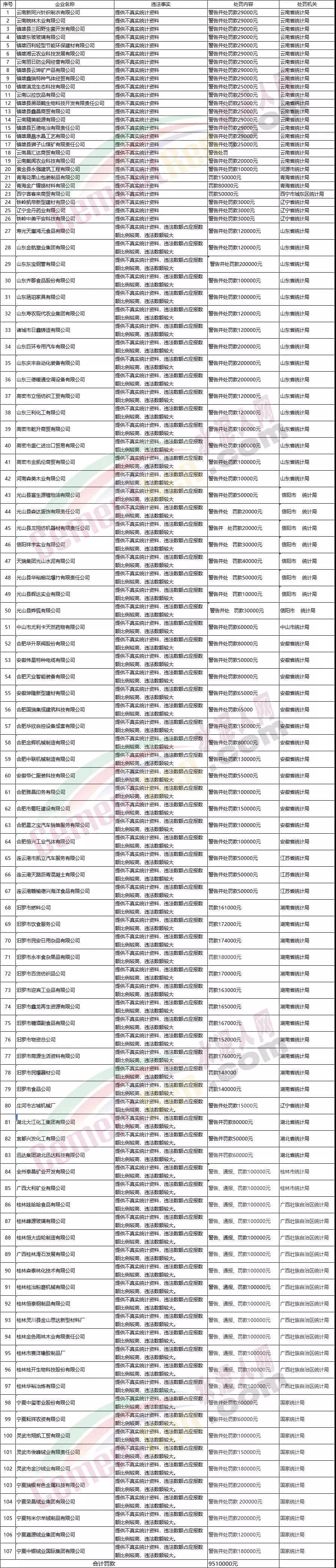 統(tǒng)計(jì)上嚴(yán)重失信企業(yè)信息公示名單一覽