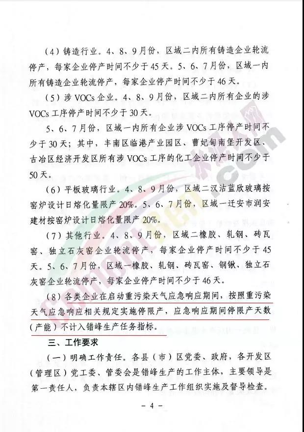 各類企業(yè)在啟動重污染天氣應(yīng)急響應(yīng)期間,按照重污染天氣應(yīng)急響應(yīng)相關(guān)規(guī)定實(shí)施停限產(chǎn),應(yīng)急響應(yīng)期間停限天數(shù)(產(chǎn)能)不計(jì)入錯(cuò)峰生產(chǎn)任務(wù)指標(biāo)。文件原文如下: