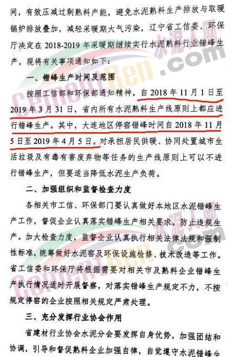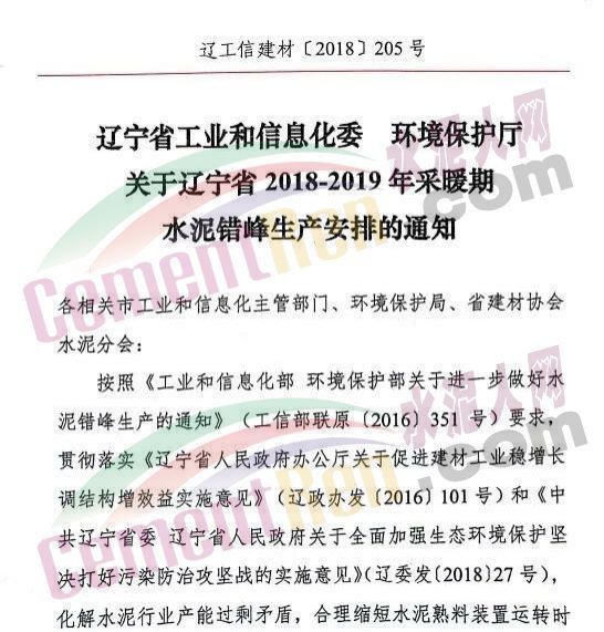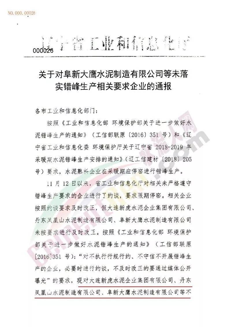 2018年11月10日遼寧省工信廳曾對(duì)大鷹水泥等企業(yè)未落實(shí)錯(cuò)峰生產(chǎn)相關(guān)要求企業(yè)做出公開(kāi)通報(bào),通報(bào)原文如下: