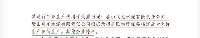 其中,豐潤(rùn)區(qū)冀東水泥有限公司唐山分公司、灤州市冀東水泥有限公司灤縣分公司、灤南縣耀東水泥、古冶區(qū)冀東啟新水泥按照核定處置污染的最低負(fù)荷生產(chǎn)。