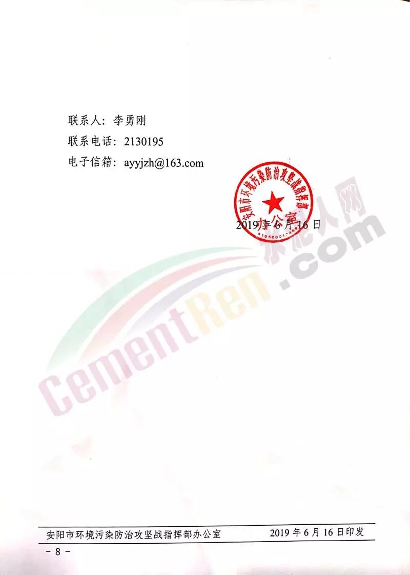 水泥人網(wǎng)通訊員消息:日前,河南省安陽市環(huán)境污染防治攻堅戰(zhàn)指揮部發(fā)布安環(huán)攻堅辦【2019】281號文件《關(guān)于實行大氣污染輕中度污染管控措施的通知》稱去年6月,安陽市因臭氧超標損失26個優(yōu)良天。根據(jù)環(huán)境空氣質(zhì)量研判分析情況 ,今年6月安陽市降水量較常年偏少,下半月天氣將高溫干燥,臭氧污染將愈加嚴重,同時由于缺乏有效降水,極易造成揚塵污染。為最大限度改善環(huán)境空氣質(zhì)量,保障人民群眾身體健康,按照精準研判、科學管控的原則,經(jīng)安陽市環(huán)境污染防治攻堅戰(zhàn)指揮部研究決定,從6月16日20時至6月30日24時對部分工業(yè)企業(yè)、機動車、餐飲油煙、工地等實行大氣污染輕中度管控措施。