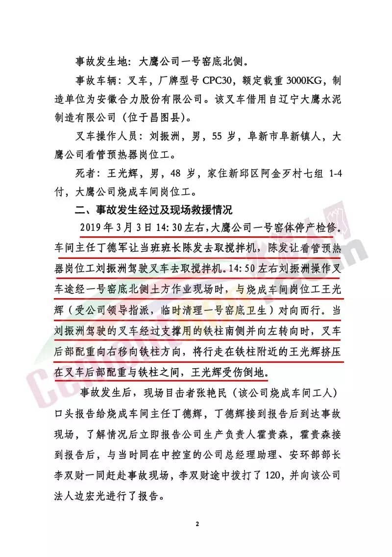 今年3月6日,遼寧省應(yīng)急管理廳責(zé)成阜新市應(yīng)急管理局對(duì)阜新市大鷹水泥制造有限公司事故舉報(bào)信息進(jìn)行核實(shí)。經(jīng)核實(shí)后確認(rèn),3月3日14:50分左右,鷹水泥發(fā)生了一起一般車輛傷害事故,事故造成一人死亡。自3月3日事故發(fā)生后至3月6日市應(yīng)急管理局前往阜蒙縣和大鷹公司核實(shí)事故前,該公司并未主動(dòng)向當(dāng)?shù)卣虬踩O(jiān)管部門報(bào)告事故相關(guān)信息,事實(shí)上形成了事故瞞報(bào)。事故造成1人死亡,直接經(jīng)濟(jì)損失204.2萬(wàn)元。事故直接原因?yàn)?,大鷹水泥公司看管預(yù)熱器工人劉某沒(méi)有叉車作業(yè)人員證,違章作業(yè)。經(jīng)事故調(diào)查組認(rèn)定,本起事故為一般生產(chǎn)安全瞞報(bào)事故。