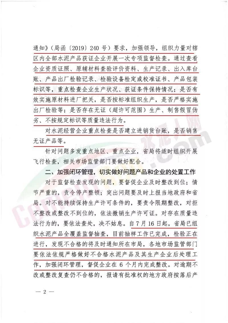 應上述文件要求7月30日,濟寧市市場監(jiān)管局向各縣市區(qū)局轉發(fā)了上述通知。并于近日開展了水泥生產(chǎn)經(jīng)營企業(yè)專項監(jiān)督檢查,主要檢查是否存在無證(超許可范圍)生產(chǎn)、制售假冒偽劣、不按規(guī)定標識等質量違法行為等。