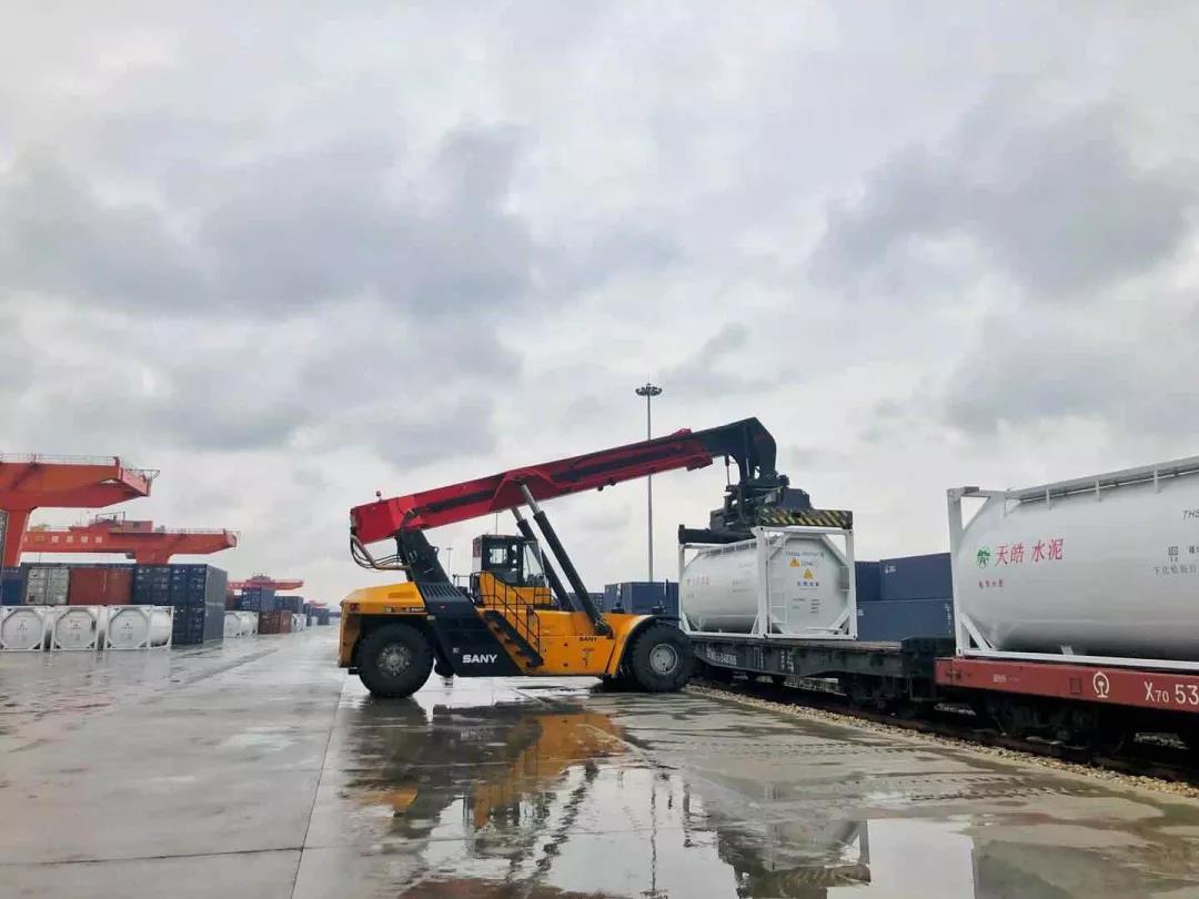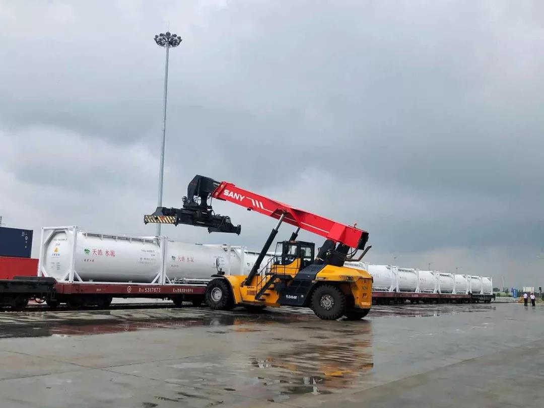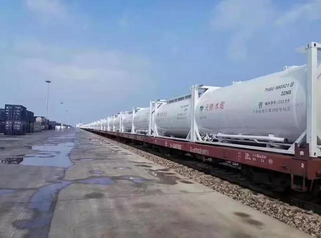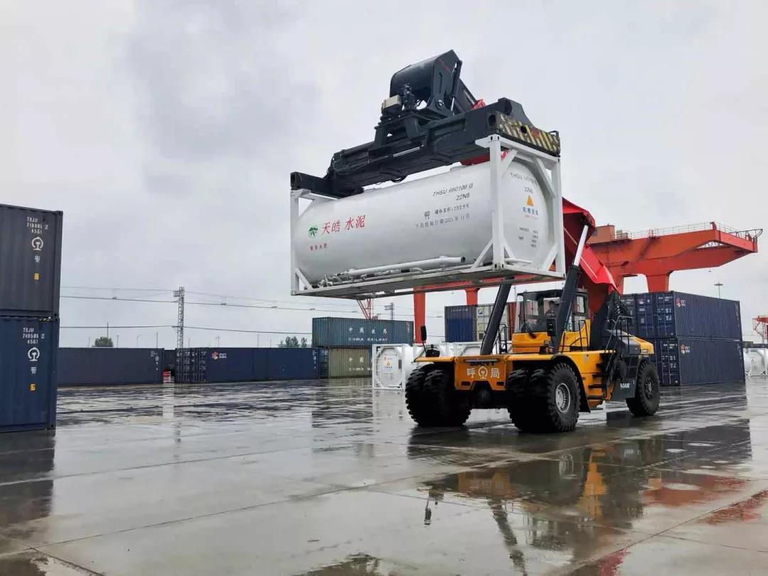 400個裝運散裝水泥的定制罐式集裝箱陸續(xù)到達廠區(qū),未來每日將有100個罐式集裝箱發(fā)往北京、河南、河北等地