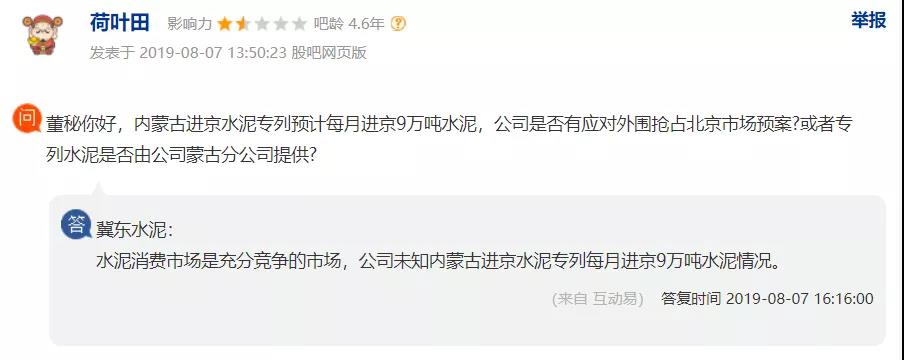 董秘回復(fù)稱:水泥消費市場是充分競爭的市場,公司未知內(nèi)蒙古進京水泥專列每月進京9萬噸水泥情況。