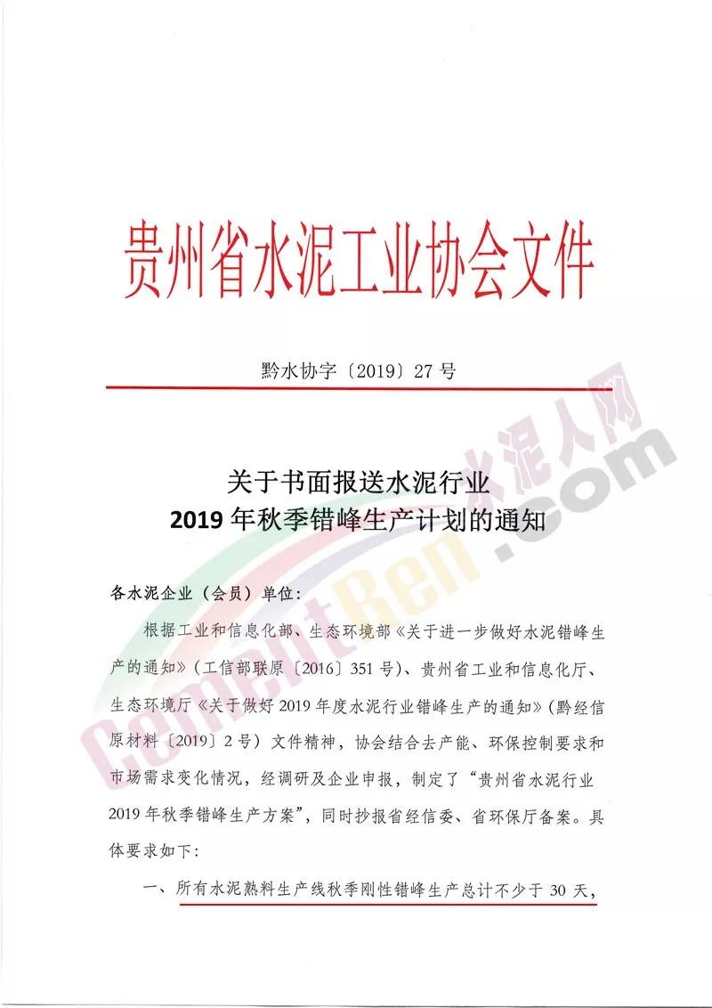 就在當(dāng)?shù)仄髽I(yè)一籌莫展之際,貴州省水泥協(xié)會(huì)緊急發(fā)布秋季錯(cuò)峰停產(chǎn)文件,要求省內(nèi)所有水泥熟料生產(chǎn)線(xiàn)秋季剛性錯(cuò)峰生產(chǎn)總計(jì)不少于30天,原則上每月錯(cuò)峰生產(chǎn)10天/窯。