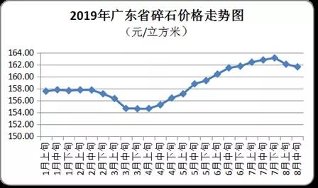 8月中旬,全省碎石平均購進價為每立方米162元,環(huán)比微降0.27%。其中,粵北碎石均價為每立方米134元,環(huán)比微升0.14%;珠三角地區(qū)均價為每立方米179元,環(huán)比微降0.86%;粵東和粵西地區(qū)均價分別為每立方米189元和142元,環(huán)比均持平。
