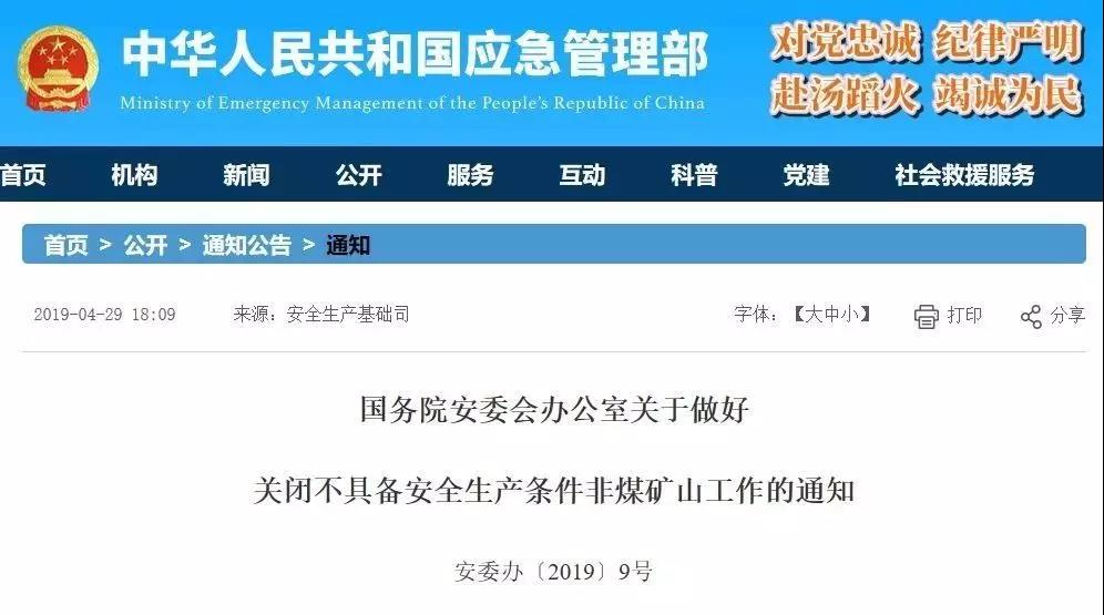 早在今年4月份,國務(wù)院安委會(huì)辦公室發(fā)布《關(guān)于做好關(guān)閉不具備安全生產(chǎn)條件非煤礦山工作的通知》。