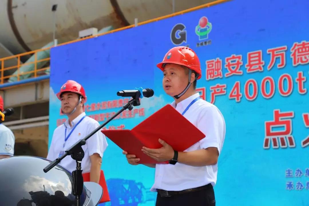 融安縣委書記陳宏在致辭中表示,融安縣萬德七星水泥有限責任公司新型干法水泥生產(chǎn)線技改項目點火投料,標志著融安縣有史以來投資規(guī)模最大的工業(yè)項目全面竣工試產(chǎn)。是融安縣企業(yè)兼并重組、產(chǎn)業(yè)轉(zhuǎn)型升級示范性項目。項目的建設對優(yōu)化縣工業(yè)結(jié)構(gòu)、完善工業(yè)產(chǎn)業(yè)布局、擴大就業(yè)機會和推動縣域經(jīng)濟發(fā)展等方面都具有十分重要的意義。希望萬德七星水泥有限責任公司以點火投料為契機,繼續(xù)發(fā)揮自身產(chǎn)業(yè)優(yōu)勢,優(yōu)化經(jīng)營管理,在融安這片充滿生機和活力的熱土上大展宏圖,創(chuàng)造出更加輝煌燦爛的業(yè)績、為融安縣建設柳州市域次中心城市作出積極貢獻。