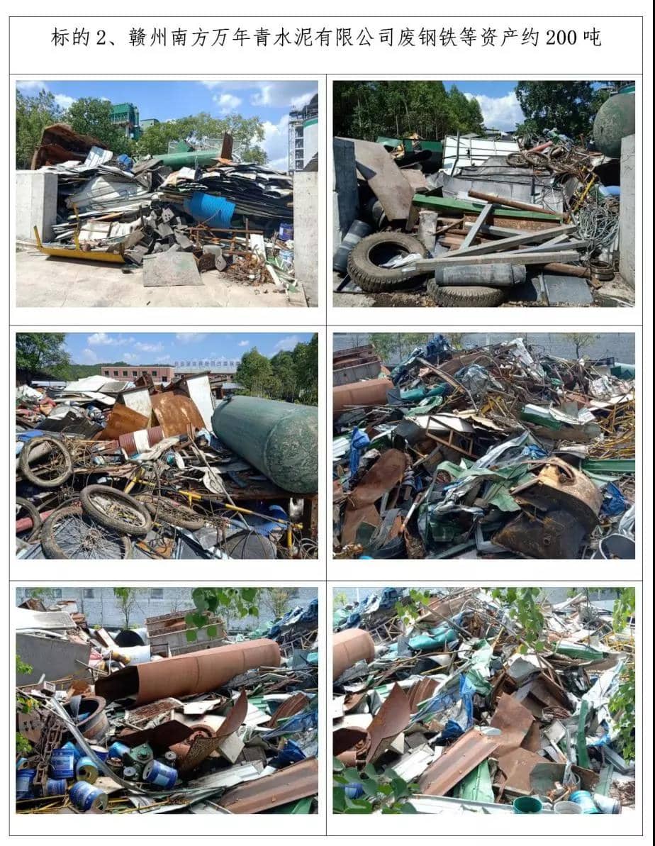 標(biāo)的2:江西贛州南方萬年青水泥有限公司擁有的廢鋼鐵等資產(chǎn)約200噸,起拍價(jià)1700元/噸。