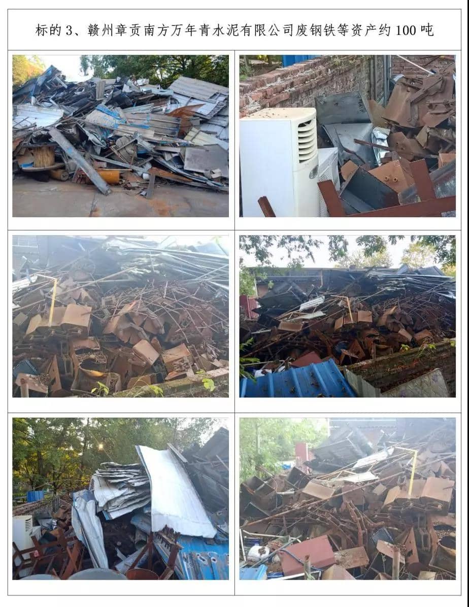 標(biāo)的3:贛州章貢南方萬年青水泥有限公司擁有的廢鋼鐵等資產(chǎn)約100噸,起拍價(jià)1700元/噸。