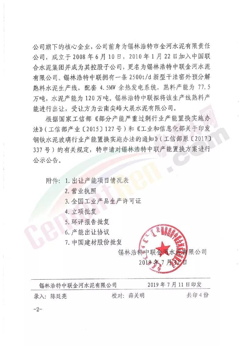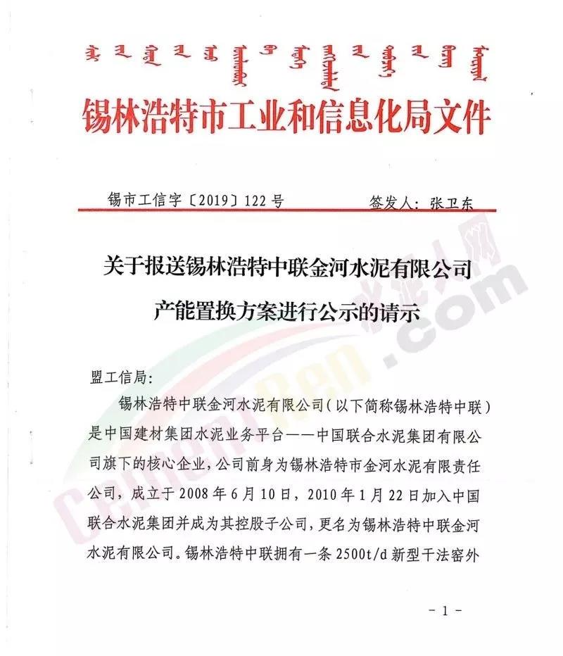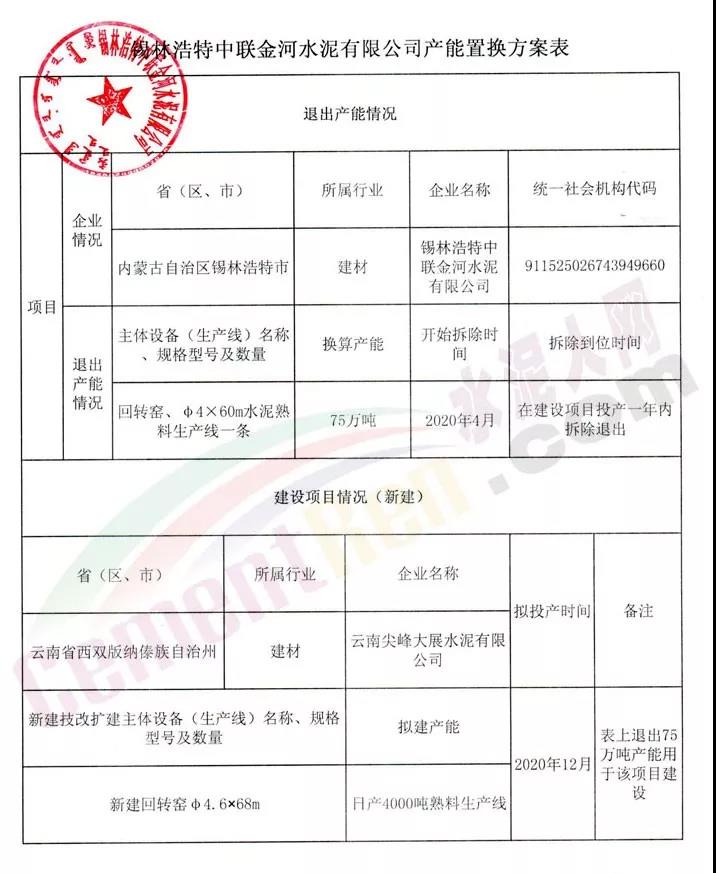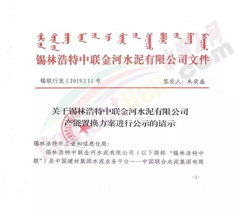 日前,內(nèi)蒙古自治區(qū)工信廳發(fā)布《關(guān)于錫林浩特中聯(lián)金河水泥有限公司產(chǎn)能出讓的公示》稱(chēng),按照《國(guó)務(wù)院關(guān)于化解產(chǎn)能?chē)?yán)重過(guò)剩矛盾的指導(dǎo)意見(jiàn)》和《水泥玻璃行業(yè)產(chǎn)能置換實(shí)施辦法》要求,對(duì)錫林浩特中聯(lián)金河水泥有限公司出讓一條日產(chǎn)2500噸新型干法水泥熟料生產(chǎn)線情況予以公示,公示期自公示日起五個(gè)工作日,并歡迎社會(huì)公眾進(jìn)行監(jiān)督。公示原文如下: