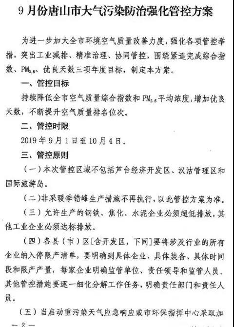 根據(jù)灤南縣人民政府辦公室關(guān)于印發(fā)《9月份灤南縣大氣污染防治強(qiáng)化管控方案》的通知顯示,為進(jìn)一步加大全縣環(huán)境空氣質(zhì)量改善力度,強(qiáng)化各項(xiàng)管控舉措,突出工業(yè)減排、精準(zhǔn)治理、協(xié)同管控,按照《9月份唐山市大氣污染防治強(qiáng)化管控方案》要求,圍繞緊追完成綜合指數(shù)、PM2.5、優(yōu)良天數(shù)三項(xiàng)年度目標(biāo),制定本方案。