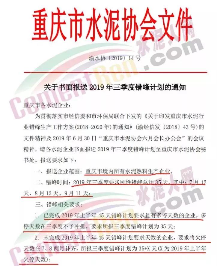 價(jià)格上漲原因?yàn)椋褐貞c地區(qū)水泥企業(yè)三季度要求剛性錯(cuò)峰生產(chǎn)35天,其中7月12天、8月12天、9月11天,影響熟料約600萬噸。錯(cuò)峰生產(chǎn)一方面抑制熟料產(chǎn)能,另外增加水泥單位生產(chǎn)成本,從而導(dǎo)致水泥價(jià)格上漲。