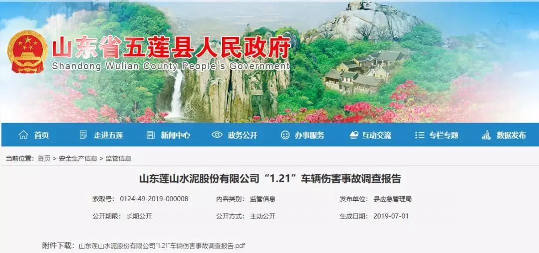 今年7月,山東省五蓮縣人民政府官網(wǎng)發(fā)布了關(guān)于此次事故的調(diào)報告。報告全文如下: