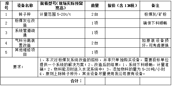 2、項(xiàng)目名稱(chēng):粉煤灰添加系統(tǒng)改造(含轉(zhuǎn)子秤等采購(gòu))