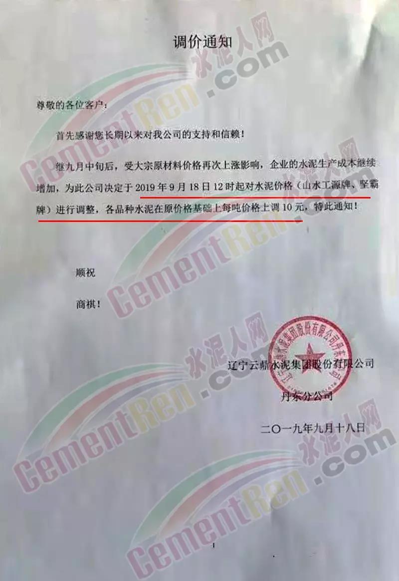 據(jù)了解,上述水泥價(jià)格上漲多因上游原材料礦粉,混合材,以及煤炭?jī)r(jià)格上調(diào)導(dǎo)致的成本增加繼而傳導(dǎo)漲價(jià)。亦有部分是政策面因素,停限產(chǎn)導(dǎo)致部分區(qū)域庫(kù)位較低,供應(yīng)不足。為保供重點(diǎn)項(xiàng)目,部分企業(yè)上調(diào)了水泥價(jià)格。昨日(9月18日)遼寧云鼎水泥集團(tuán) 股份有限公司發(fā)布調(diào)價(jià)通知稱(chēng),繼九月中旬后,受大宗原材料價(jià)格再次上漲影響,企業(yè)的水泥生產(chǎn)成本繼續(xù)增加,為此公司決定于9月18日12時(shí)起對(duì)水泥價(jià)格(山水工源牌、堅(jiān)霸牌)進(jìn)行調(diào)整,各品種水泥在原價(jià)格基礎(chǔ)上每噸價(jià)格上調(diào)10元。