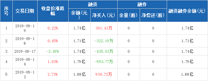 融資方面,當(dāng)日融資買入1629.17萬元,融資償還1327.73萬元,融資凈買入301.43萬元。融券方面,融券賣出0股,融券償還0股,融券余量0股,融券余額0元。融資融券余額合計(jì)1.74億元。