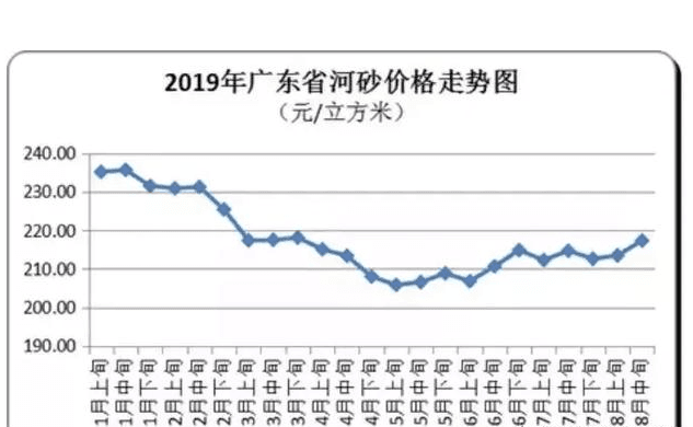 受多區(qū)域禁采以及各種的政策前提下多區(qū)域出現(xiàn)砂石價格飚漲,而且還伴隨著供需緊缺的情況。據(jù)了解,2019年以來,隨著河南、河北、湖北、江西等地相繼發(fā)布砂石禁采文件,砂石供應(yīng)量大幅減少。截止8月中旬,廣東全省河砂平均購進(jìn)價為每立方米217元,較8月上旬上升漲1.8%。其中,粵西和珠三角地區(qū)購進(jìn)價漲幅較大,均價分別為每立方米220元和200元,環(huán)比分別上升3.53%和3.61%。