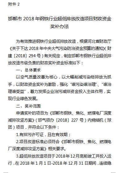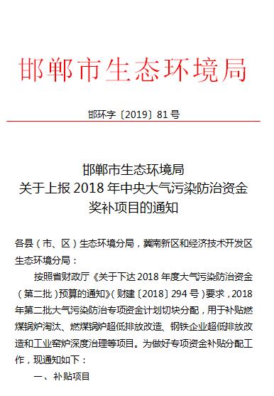 日前,邯鄲印發(fā)關(guān)于上報2018年中央大氣污染防治資金獎補(bǔ)項目的通知。涉及燃煤鍋爐淘汰、燃煤鍋爐超低排放改造、鋼鐵企業(yè)超低排放改造和工業(yè)爐窯深度治理等項目。