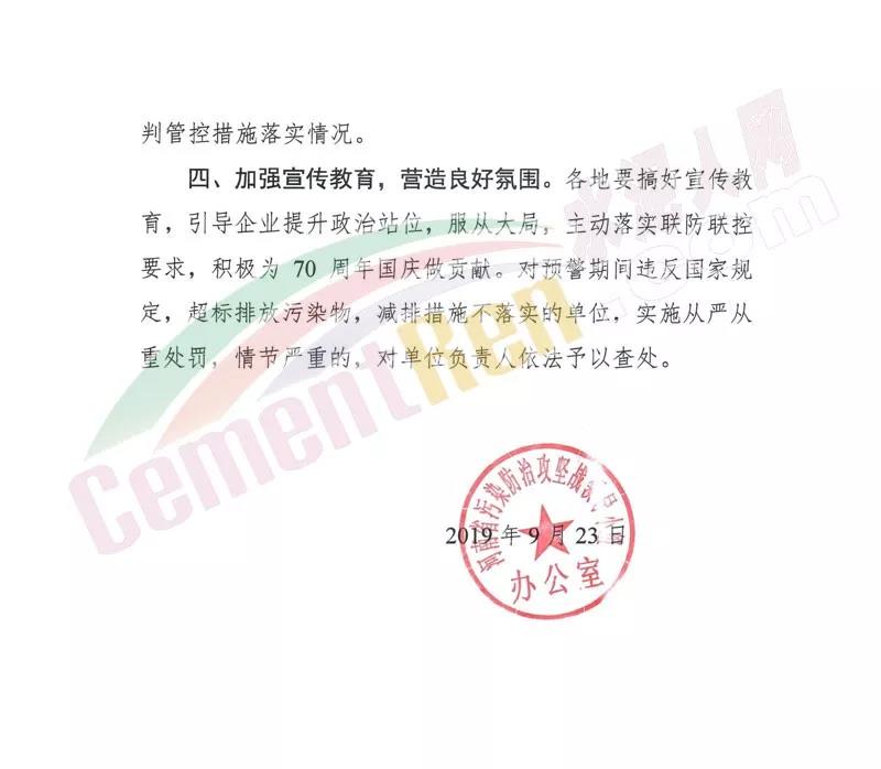 日前,繼河南省新鄉(xiāng)市,安陽市發(fā)布重污染天氣紅色預(yù)警后,開封市也發(fā)布了紅色預(yù)警通知。通知要求所轄區(qū)區(qū)域于2019年9月24日0時(shí)啟動(dòng)紅色預(yù)警(Ⅰ)級響應(yīng),預(yù)警解除時(shí)間另行通知 。通知要求水泥粉磨站、露天石材加工等行業(yè)實(shí)施停產(chǎn)措施。