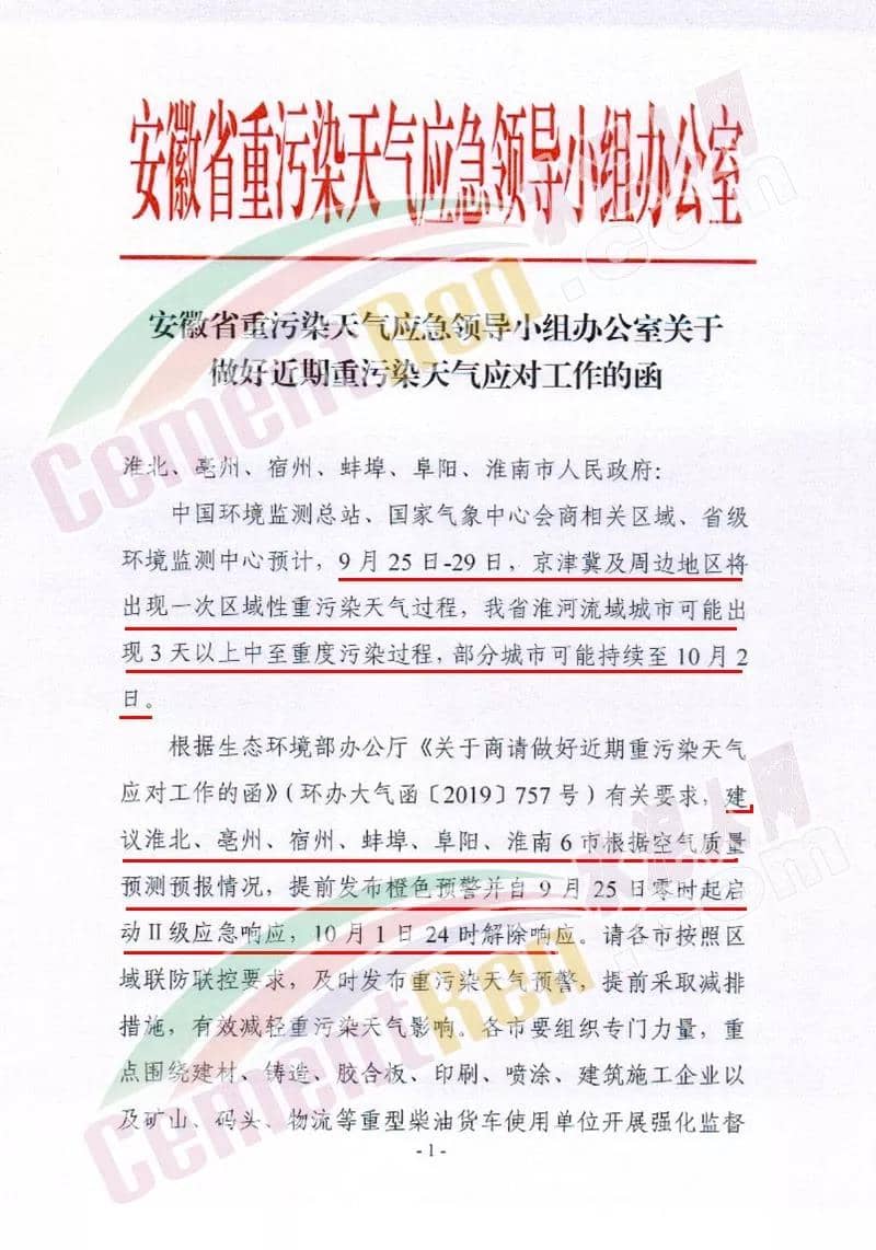 日前,安徽省重污染天氣應急領(lǐng)導小組辦公室發(fā)布《關(guān)于做好近期重污染天氣應對工作的函》建議淮北、亳州、宿州、蚌埠、阜陽、淮南6市根據(jù)空氣質(zhì)量預測預報情況 ,提前發(fā)布橙色預警并自9月25日零時起啟動II級應急響應。10月1日24時解除響應。全文如下: