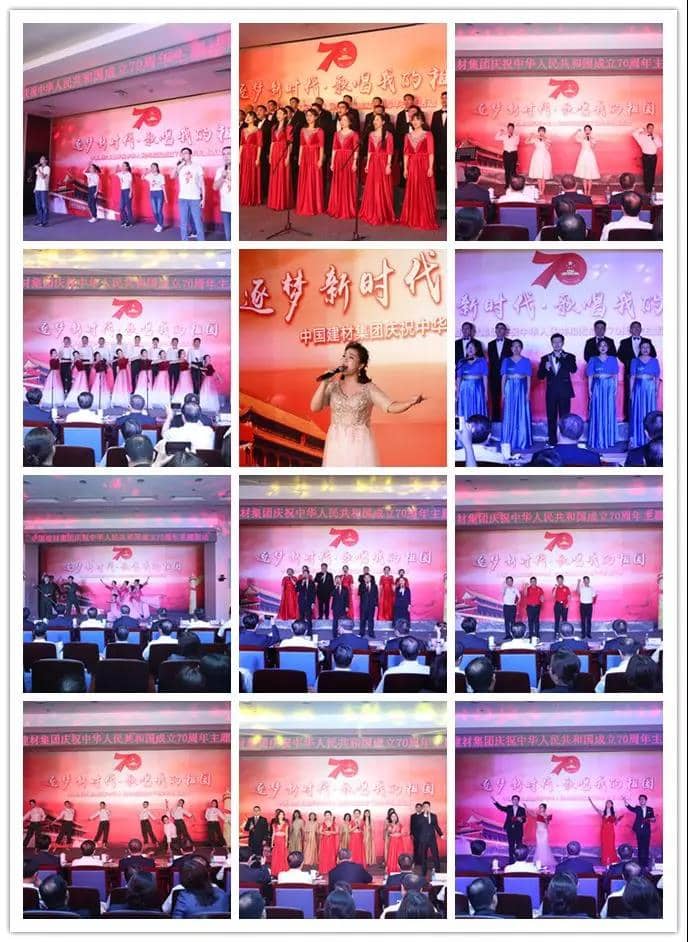 節(jié)目匯演本次活動以“逐夢新時代·歌唱我的祖國”為主題,由集團(tuán)總部、中國建材股份、凱盛科技、資產(chǎn)公司、財務(wù)公司、中聯(lián)水泥、中國復(fù)材等7家單位表演了歌舞、合唱、詩朗誦等多種形式的節(jié)目。