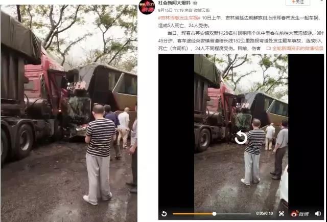 9月10日9時許,一輛吉H76716號中型客車途經(jīng)吉林省延邊市琿春市英安鎮(zhèn)去往大荒溝村公路一處彎道時發(fā)生側(cè)翻,造成5人死亡、24人受傷。