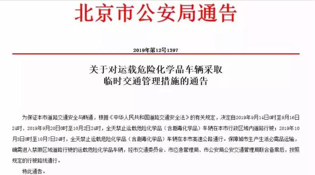 北京市:黃標車市內(nèi)限行,危化車高速也限行1、每天6時至23時,五環(huán)路(不含)以內(nèi)道路禁止載貨汽車通行,五環(huán)路主路禁止核定載質(zhì)量8噸(含)以上載貨汽車通行。2、排放達不到國Ⅲ標準的柴油車,全天禁止進入六環(huán)路(含)以內(nèi)道路和遠郊區(qū)縣城關鎮(zhèn)主要道路通行;本市相關部門不予辦理營運證和通行證。3、9月20日0時至10月2日24時,全天禁止運載危險化學品(含劇毒化學品)車輛在本市行政區(qū)域內(nèi)道路行駛;2019年10月3日0時至10月7日24時,全天禁止運載危險化學品(含劇毒化學品)車輛在本市高速公路通行。