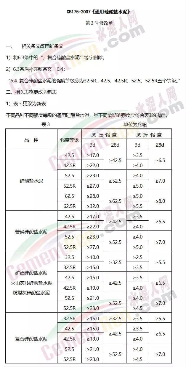 根據國家市場監(jiān)督管理總局、國家標準化管理委員會標準GB175-2007《硅酸鹽通用水泥》3號修改單規(guī)定,復合硅酸鹽水泥32.5R強度等級將于2019年10月1日起被取消,同時將復合硅酸鹽水泥的強度等級分為42.5、42.5R、52.5、52.5R四個等級。關于復合硅酸鹽水泥和普通水泥的區(qū)別,消費者還是疑惑重重。 復合水泥是混合水泥嗎?“復合”不可單純的理解為“混合”,不是雜亂無章的將材料拌合在一起,而是按照一定的配比要求酌量添加,分別混合。復合硅酸鹽水泥質量穩(wěn)定,凝結硬化快,早期強度高,和易性和抗?jié)B性等均優(yōu)于礦渣水泥,干縮性與普通硅酸鹽水泥一致。復合硅酸鹽水泥因“復合”二字讓部分用戶誤解,認為復合就是“混雜”。試驗研究顯示,其混凝土耐久性優(yōu)于其它品種水泥,適用于中小型構件、農村民房、現澆結構。 “復合水泥”有什么樣的特殊性能呢? 復合水泥的一般物理性能(如細度、凝結時間、強度等)同普通水泥接近,其國家標準中規(guī)定的各種品質指標幾乎與普通水泥完全一致,主要差別在于復合水泥中混合材摻量較大。復合水泥的復合特性與復摻混合材料的品種、數量有關。就混合材料的品種而言,每一種可用混合材都有自身某一方面的特性,但往往在其它方面有不足之處。在這種情況下,有意識的摻加其它可以彌補彼此間性能不足的混合材料后,會產生復摻混合材的疊加效應,使生產出的復合水泥具有摻單一混合材料時所不能有的優(yōu)良效果。廣泛適用于民用建筑、工業(yè)工程、預制構件、保溫材料及裝飾裝修工程等。復合硅酸鹽水泥P·C42.5R與普通硅酸鹽水泥P·O42.5R的區(qū)別?兩者物理性能(如細度、凝結時間、強度等)接近主要區(qū)別在于P·C42.5R混合材摻量較大,水泥水化熱低,在體積混凝土施工中不易開裂。由于混合材性質、摻量的不同,通用硅酸鹽水泥會呈現一定的性能差異,并具有明顯的性能優(yōu)點和缺陷。復合硅酸鹽水泥除了具有礦渣硅酸鹽水泥、火山灰硅酸鹽水泥、粉煤灰硅酸鹽水泥等單一品種混合材水泥所具有的水化熱低、耐蝕性好、韌性好的優(yōu)點外,還能通過混合材料的復摻優(yōu)化水泥的性能,如改善保水性、降低需水性、減少干燥收縮、適宜的早期和后期強度發(fā)展。復合硅酸鹽水泥可用于無特殊要求的一般結構工程,適用于地下、水中、大體積等混凝土工程,特別是有環(huán)境水侵蝕的工程,但不宜用于需要早強和受凍融循環(huán)、干濕交替的工程中。
