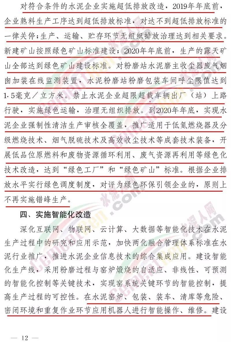到2020年底,實(shí)現(xiàn)水泥企業(yè)強(qiáng)制性清潔生產(chǎn)審核全覆蓋,推廣適用于低氮燃燒器及分級燃燒技術(shù)、煙氣脫硫技術(shù)及高效收塵技術(shù)等成套技術(shù)裝備,開展低品位原燃料和廢物資源循環(huán)利用、廢氣資源再利用等綠色化技術(shù)改造,達(dá)到“綠色工廠”和“綠色礦山”標(biāo)準(zhǔn)。
