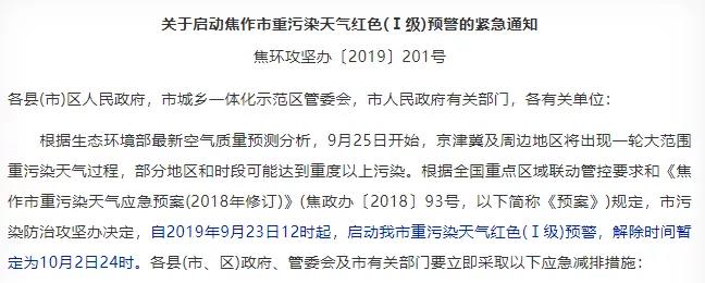 太原:9月25日0時(shí)-10月2日24時(shí)啟動(dòng)重污染天氣應(yīng)急預(yù)案橙色(二級(jí))響應(yīng);