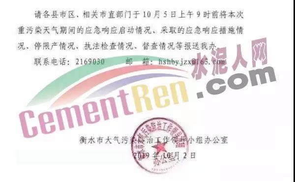 據(jù)水泥人網(wǎng)消息,衡水市大氣污染防治工作領(lǐng)導(dǎo)小組辦公室發(fā)布《關(guān)于解除重污染天氣II級(橙色)應(yīng)急響應(yīng)的通知》稱,根據(jù)《關(guān)于解除重污染天氣II級應(yīng)急響應(yīng)的通知》(冀氣領(lǐng)辦【2019】195號(hào))的精神,經(jīng)省環(huán)境應(yīng)急與重污染天氣預(yù)警中心與中國環(huán)境監(jiān)測總站、省環(huán)境氣象中心聯(lián)合會(huì)商,預(yù)計(jì)10月3日夜間起,西北冷空氣自北向南影響河北省,污染逐步清除。預(yù)計(jì)4日衡水市本次污染過程基本結(jié)束,按上級要求,經(jīng)衡水市大氣污染防治工作領(lǐng)導(dǎo)小組批準(zhǔn),衡水市定于10月4日8時(shí)解除本次重污染天氣應(yīng)急響應(yīng)。 原文如下: