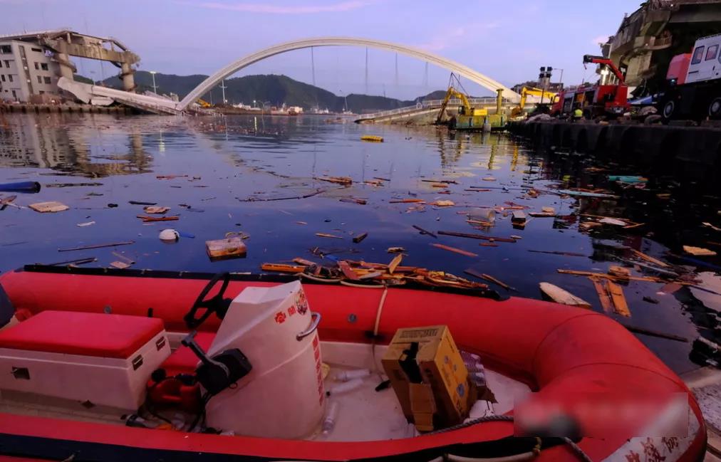 大橋使用20年即坍塌,事發(fā)原因尚待厘清 “中央社”報道稱,2日清晨6時左右,天色逐漸變亮,港灣的水面上布滿油污和船體被支解的木塊、木屑,空氣中彌漫著濃濃的柴油味。而橋梁倒塌后,連帶壓倒電線,引發(fā)2400戶家庭停電;同時也堵塞航道,令南方澳漁港內(nèi)800艘漁船進(jìn)出不得。