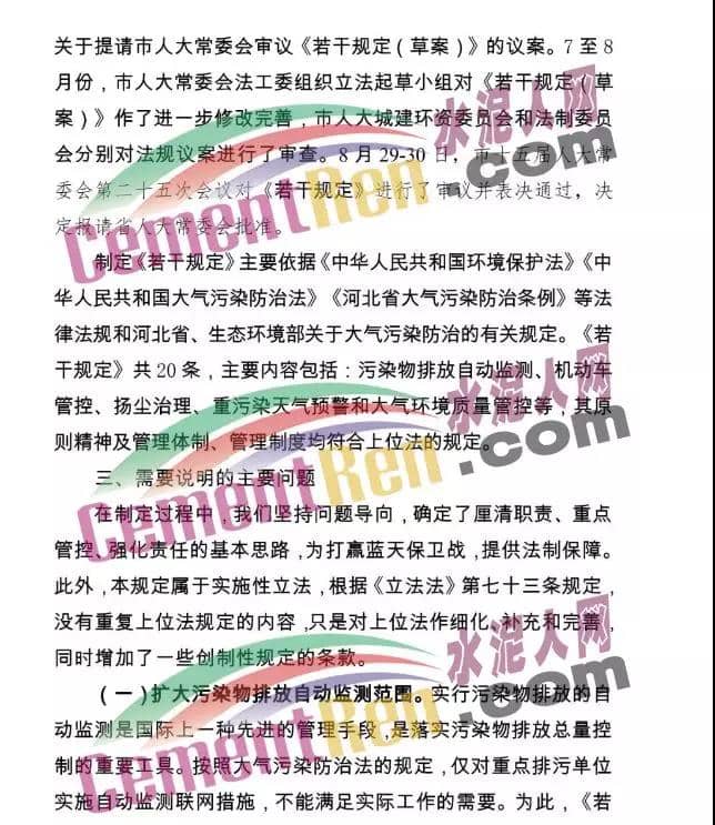據(jù)水泥人網(wǎng)消息,近日,唐山市第十五屆人民代表大會常務(wù)委員會發(fā)布《公告》稱,《唐山市大氣污染防治若干規(guī)定》已于2019年8月30日唐山市第十五屆人民代表大會常務(wù)委員會第二十五次會議通過,經(jīng)河北省第十三屆人民代表大會常務(wù)委員會第十二次會議于2019年9月28日批準(zhǔn),自2019年11月1日起施行?! ≡撘?guī)定稱:列入名錄的重點排污單位和市生態(tài)環(huán)境主管部門確定的其它排污單位,應(yīng)當(dāng)安裝、使用大氣污染排放自動監(jiān)測設(shè)備、與生態(tài)環(huán)境主管部門的監(jiān)控聯(lián)網(wǎng)?! ∵`反本規(guī)定,有下列行為之一的,由生態(tài)環(huán)境主管部門 責(zé)令限期改正,處二萬元以上五萬元以下罰款;情節(jié)較重的,處五萬元以上十萬元以下罰款;情節(jié)嚴(yán)重的,處十萬以上二十萬以下罰款;拒不改正的,責(zé)令停產(chǎn)整治;構(gòu)成犯罪的,依法追究刑事責(zé)任: 一、未按照規(guī)定安裝、使用大所占污染排放自動監(jiān)測設(shè)備或者未按照規(guī)定與生態(tài)環(huán)境主管部門的監(jiān)控設(shè)備聯(lián)網(wǎng),并保證監(jiān)測設(shè)備常運行的; 二、、自動監(jiān)測設(shè)備因故障不能正常動行,排污單位未按照規(guī)定向生態(tài)環(huán)境主管部門報告的; 三、自動監(jiān)測設(shè)備因故障不能正常運行,排污單位未按照規(guī)定報送人工監(jiān)測數(shù)據(jù)的; 四、侵占、破壞、損毀或者擅自移動、改變、拆除、閑置大氣污染排放自動監(jiān)測; 五、篡改、偽造大氣污染自監(jiān)測數(shù)據(jù)的; 六、未按照規(guī)定對所排放的工業(yè)廢氣和有毒有害大氣污染物進(jìn)行監(jiān)測并保存原始監(jiān)測記錄?! ≡娜缦拢?img alt="" src="http://m.piarcos.com/uploadfile/2019/1008/20191008043243345.jpg" />