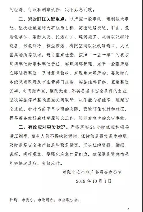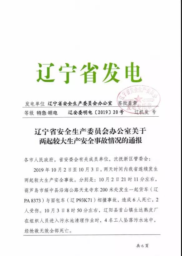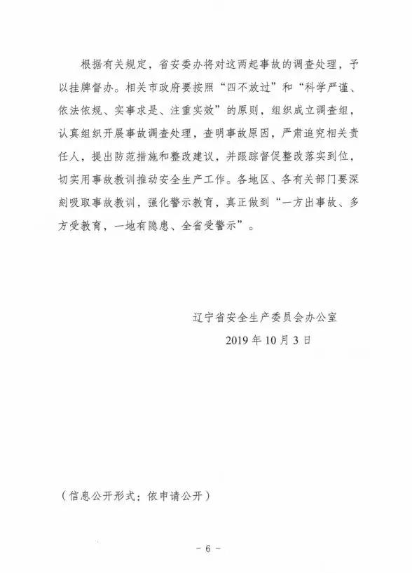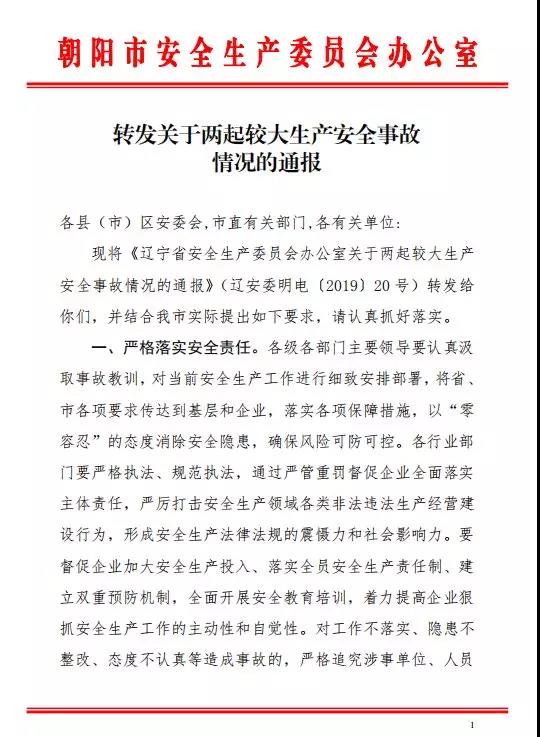 關于上述通知中提到的較大生產(chǎn)安全事故,遼寧省朝陽市安委會辦公室近日轉(zhuǎn)發(fā)了相關事故情況的通報。通報文件如下: