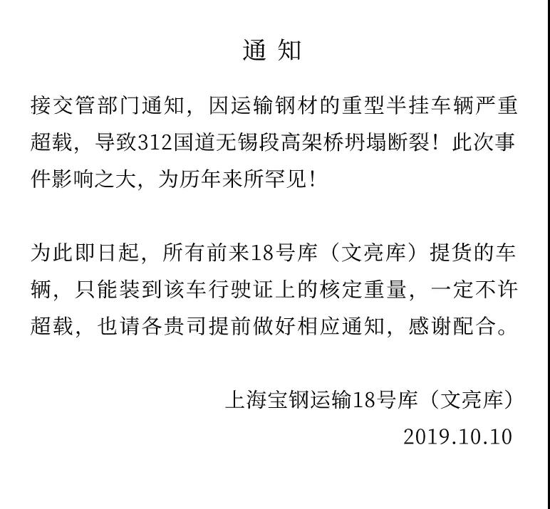 10月10日事件發(fā)生后,一經(jīng)報(bào)道瞬間引起軒然大波,江浙滬等鄰近地區(qū)的運(yùn)輸公司和配貨站紛紛接到交管部門(mén)通知,要求嚴(yán)格按照行駛證上的核定重量裝載貨物。