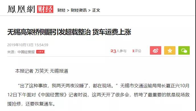 鳳凰網(wǎng):無(wú)錫事故發(fā)生后,貨車運(yùn)費(fèi)上漲▼