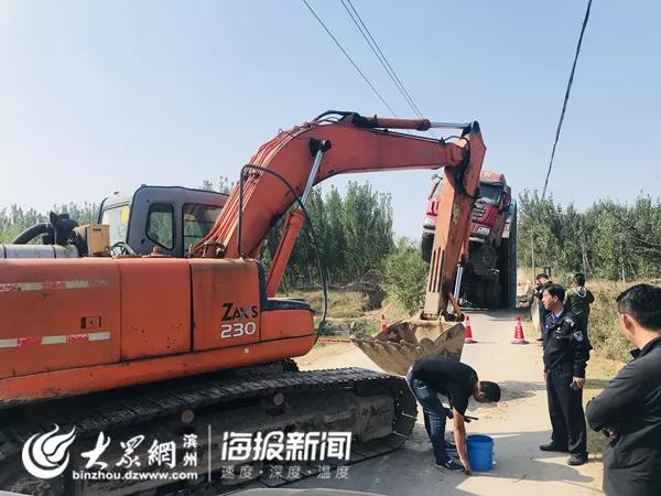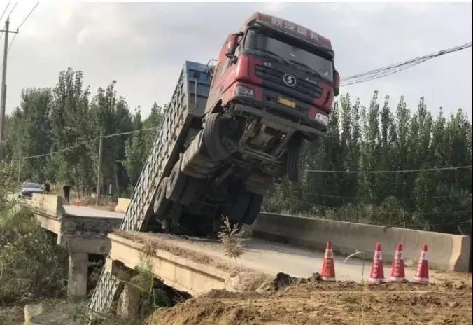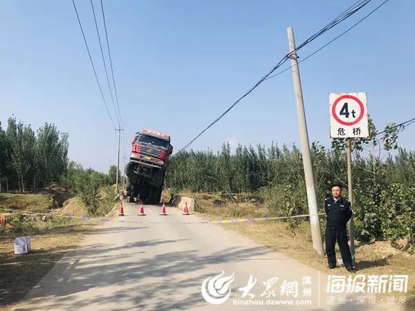 經(jīng)初步調(diào)查,13日凌晨4點(diǎn)左右,一輛魯MAN226冀JSH50掛重型半掛貨車沿渤海十八路由南向北行駛至市西辦事處李茂家村附近,右轉(zhuǎn)彎進(jìn)入連接渤海十八路與李茂家村村西鄉(xiāng)間路的一座寬4米左右的小橋時(shí),致使橋面坍塌。現(xiàn)場(chǎng)貨車呈翹起之勢(shì),車頭懸于半空中,車尾插入水中,事故未造成人員傷亡。