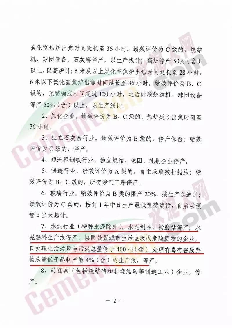 一、全面落實應急響應減排措施工業(yè)源停限產(chǎn)措施一樣面要求水泥行業(yè)(特種水泥除外),泥制品、粉磨站停產(chǎn);水泥熟料生產(chǎn)線停產(chǎn);協(xié)同處置城市生活垃圾或危險廢物的企業(yè),日處理生活垃圾與污泥總量低于400噸(含)、處理有毒有害廢棄物總量低于熟料產(chǎn)能4%(含)的生產(chǎn)線,停產(chǎn)。