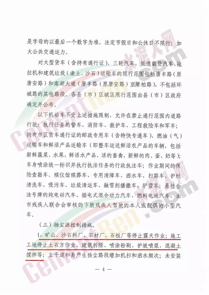 揚塵源控制措施方面,要求礦山、沙石料廠、石材廠、石板廠等停止露天作業(yè);施工工地停止土石方作業(yè)、建筑拆除、噴涂粉刷、護坡噴漿、混凝土攪拌等。