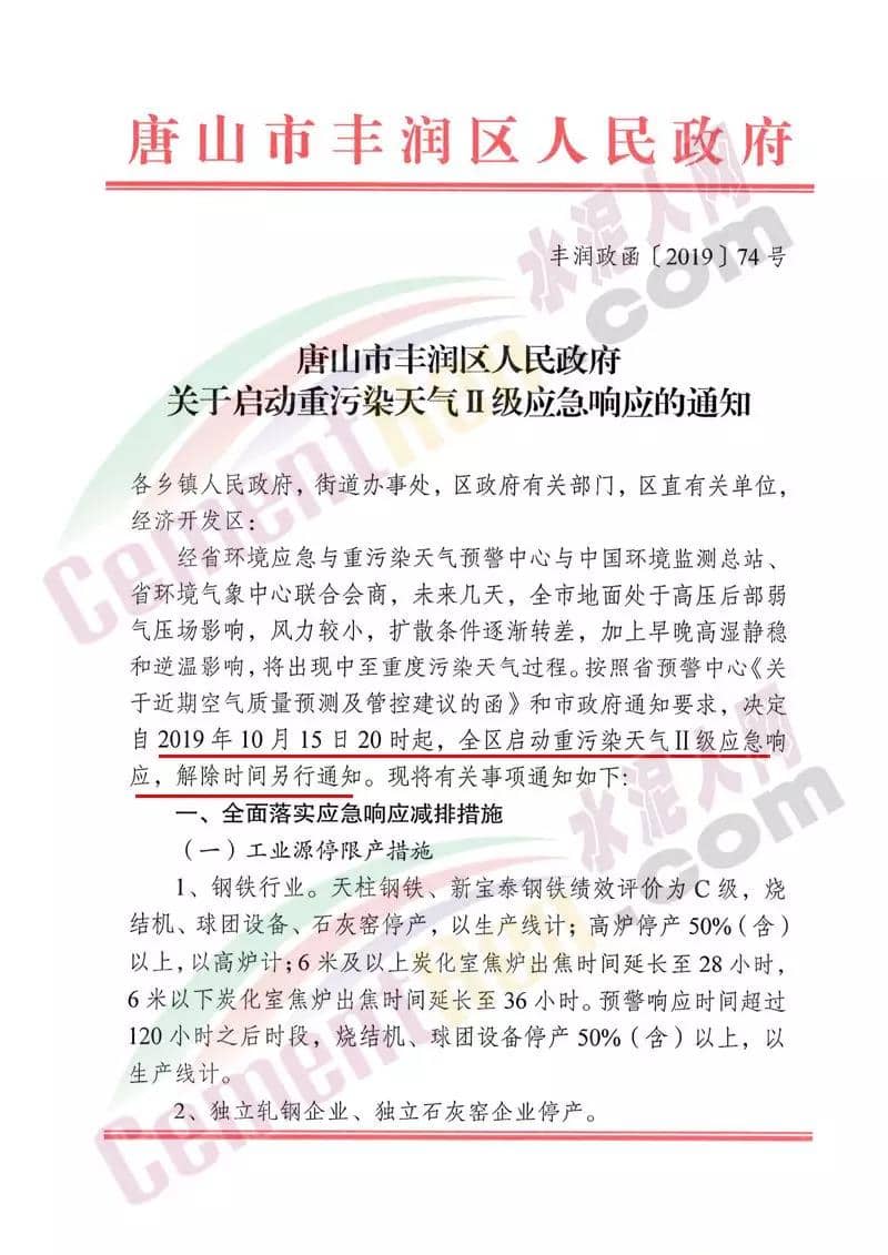 水泥人網(wǎng)消息:昨日(15日)唐山市人民政府再發(fā)特提文件《關于啟動重污染天氣II級應急響應的通知》稱,自10月15日20時起,全市啟動重污染天氣II級應急響應,解除時間根據(jù)會商結果另行通知。
