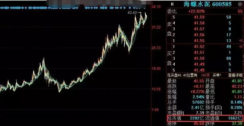 海螺水泥自2002年3月20日上市至今,復權(quán)后的股價達到了歷史新高。A股其主板市值也從2002年3月20日的73.16億增長到了2019年9月30日的2202億,17年的時間主板市值增長了30倍。如果您在2002年3月20日買入10萬元的海螺水泥股票,現(xiàn)在的價值已經(jīng)是300萬元,年收益率非常驚人!