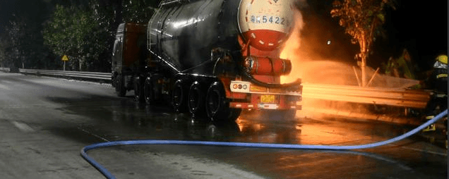 一水泥罐車凌晨突發(fā)起火