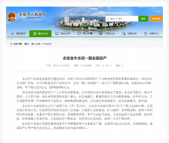 永安金牛水泥計劃投資建設(shè)兩條日產(chǎn)4500噸新型干法水泥生產(chǎn)線,總投資12億元人民幣,分兩期建設(shè),建成投產(chǎn)后年產(chǎn)值可達(dá)12億元,直接解決勞動力就業(yè)650人。