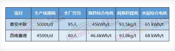 對比世界低能耗示范線生產(chǎn)線泰安中聯(lián)日產(chǎn)5000噸新型干法水泥熟料生產(chǎn)線,其智能化程度和能耗指標(biāo)有相似之處。