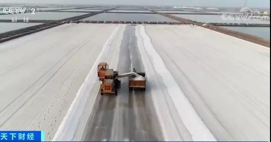 鹽場負(fù)責(zé)人說,海鹽收獲分為兩個季節(jié),春秋季各一次,每個收獲季都在一個月左右,一般是每年的5月和10月。這家鹽場一共是18萬畝,大家輪班作業(yè),24小時不間斷,采用機組和管道相結(jié)合的方式,一個月之內(nèi)要把鹽全部收完