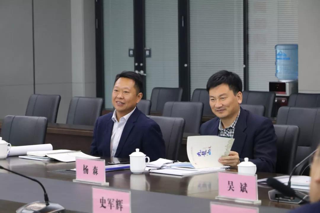 育才集團(tuán)董事長(zhǎng)史軍輝向安徽海螺水泥股份有限公司總經(jīng)理吳斌等一行介紹集團(tuán)公司概況和發(fā)展方向。