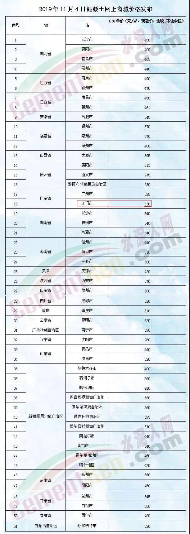 據(jù)了解,在生產(chǎn)水泥的過(guò)程中礦粉可以替代部分熟料,以減少熟料的摻加量。熟料價(jià)格相對(duì)較高的區(qū)域,企業(yè)多以礦粉替代部分熟料。南方區(qū)域鋼鐵廠相對(duì)較少,熟料價(jià)格卻相對(duì)較高,礦粉需求量大 ,部分企業(yè)跨區(qū)域從北方地區(qū)采購(gòu)水渣,以致于成本上漲,產(chǎn)品售價(jià)隨著上漲。據(jù)水泥人網(wǎng)了解,近期華中南地區(qū)不僅礦粉價(jià)格居高不下,其他混合材產(chǎn)品隨著水泥需求量上漲而上調(diào)出廠價(jià)格。混凝土價(jià)格大漲,廣東地區(qū)C30混凝土直奔700元/方11月4日,混凝土行業(yè)最大上市公司——中建西部建設(shè)在自己的電商平臺(tái)發(fā)布了最新的混凝土報(bào)價(jià)。廣東、陜西、河南、安徽、山東、四川、重慶、海南等地區(qū)的C30商混價(jià)格已經(jīng)突破500元/m³,其中廣東江門地區(qū)已突破630元/m³。并且在報(bào)價(jià)說(shuō)明中指出該價(jià)格均為現(xiàn)款價(jià),不含稅、不含泵送,還需先付款。