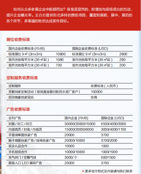 據(jù)統(tǒng)計,展會期間將有10000余名的專業(yè)觀眾蒞臨現(xiàn)場,通過面對面交流,促進企業(yè)與您更加穩(wěn)固的合作關系。主辦方也將與您共同探討如何年對行業(yè)的新發(fā)展,以嶄新的視角呈現(xiàn)了最新的產(chǎn)品、技術、服務等解決方案。